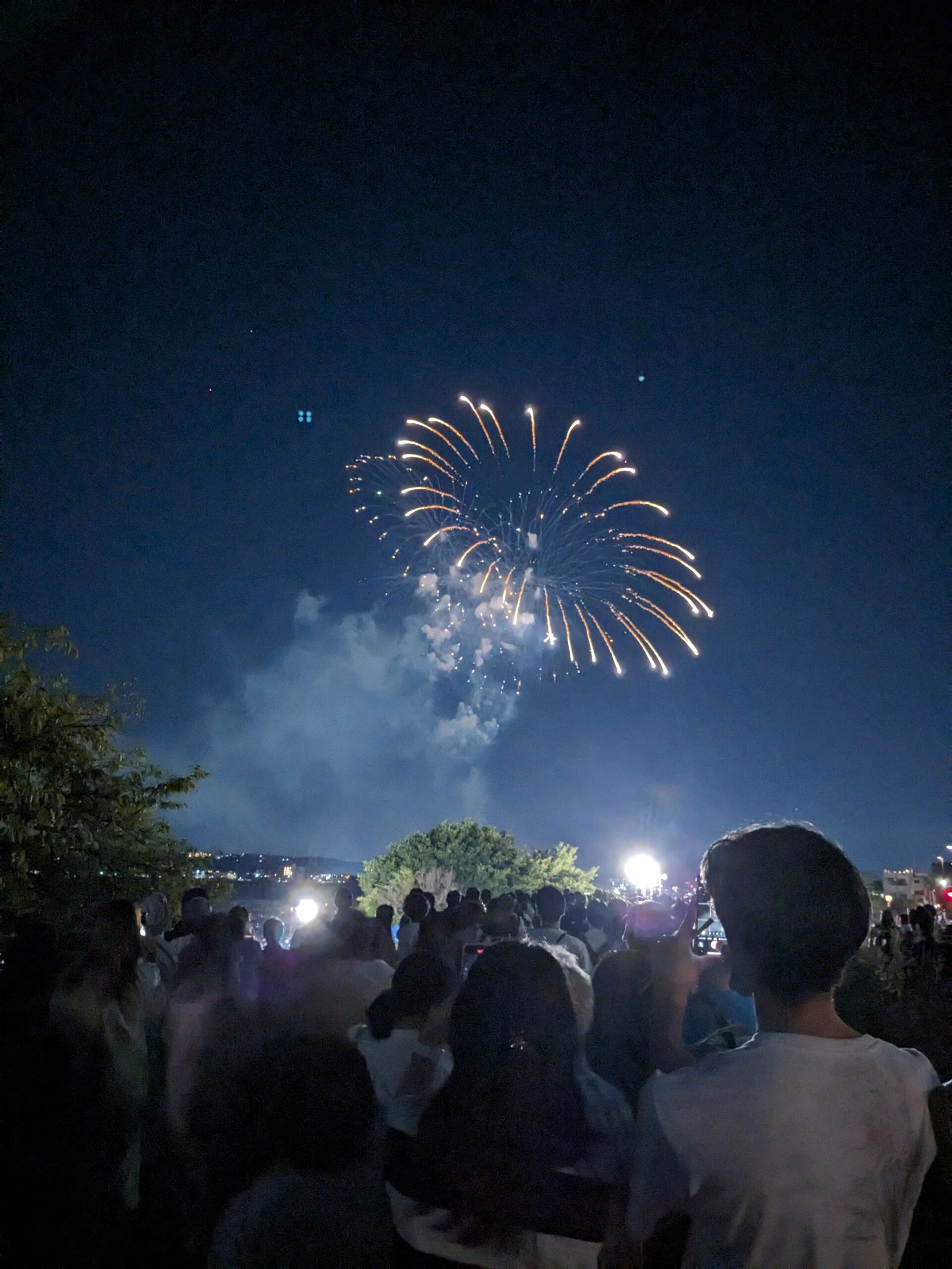 4年ぶりということもあって近くの駅から会場までは人混みがすごかったです。(以前はもっといたような気がしますが。)出店も所々出ていましたし、わいわいがやがやと昔の雰囲気が戻ってきてとてもよかたのではないかと思います。久しぶりだったので多摩川あたりの会場まで歩いてきました。普段は家の近くからでも見れるので近くまでは行かないのですが、子供もいきたがっていたの行ってきました。前回は1歳になる前だったので記憶にはないと思いますが今回はしっかりと楽しんでいました。